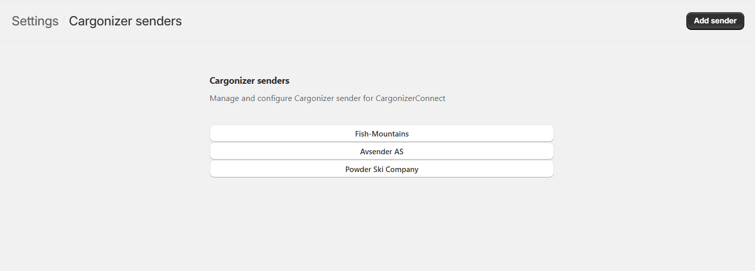 Klikk på "Cargonizer senders" og velg ønsket avsender.