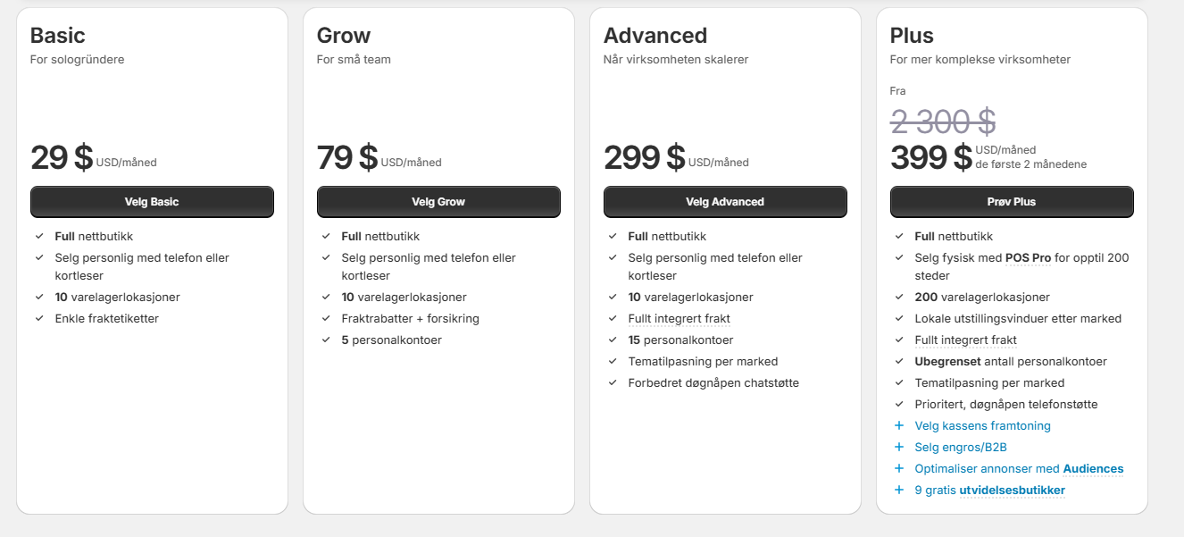 Hvilken Shopify-plan nettbutikken din har, vil påvirke hvilke funksjoner som er tilgjengelige i Cargonizer Connect. Dette styres av Shopify.