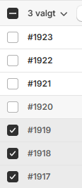 Gå til Ordrer i Shopify og huk av ordren som skal returneres.