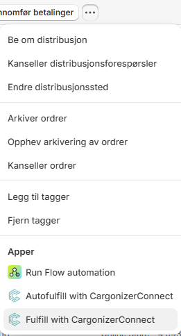 Øverst i ordrelisten finner du menyen for flere handlinger. Klikk på tre prikker (…).