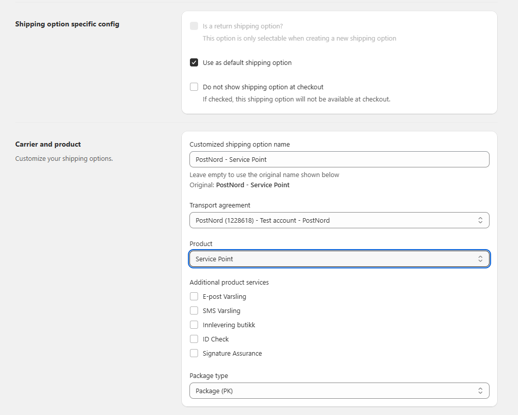 Slå på denne funksjonen dersom kunder som velger dette fraktalternativet også skal tilbys returfrakt.7.3.3 Returtransportavtale