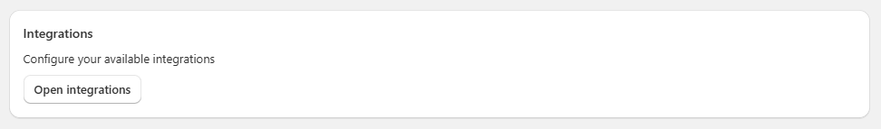 Herfra kan du enkelt navigere til alle de viktigste innstillingene for å tilpasse frakt og integrasjon:
