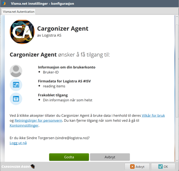 2.4 Autoriser Cargonizer Agent med Visma.net